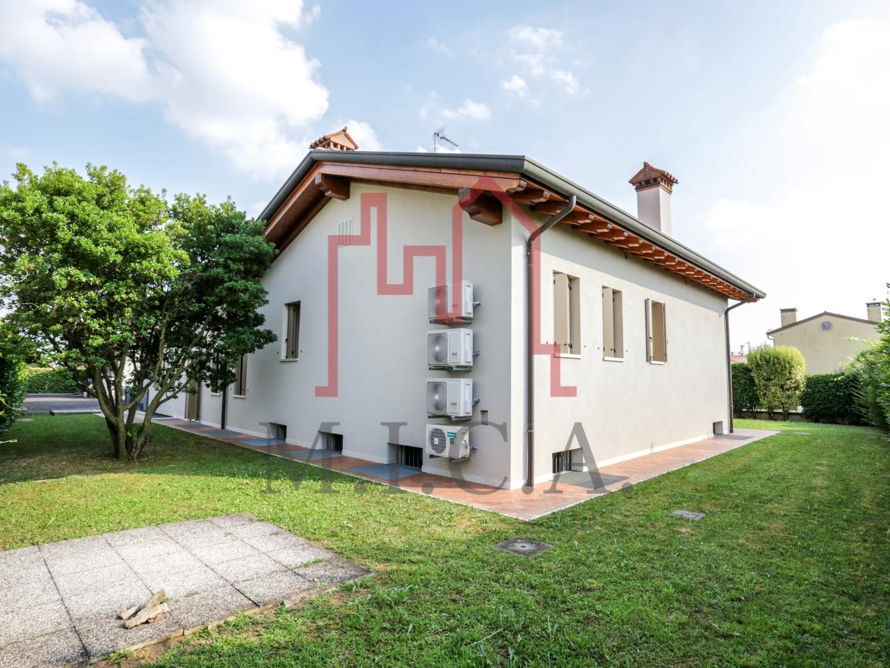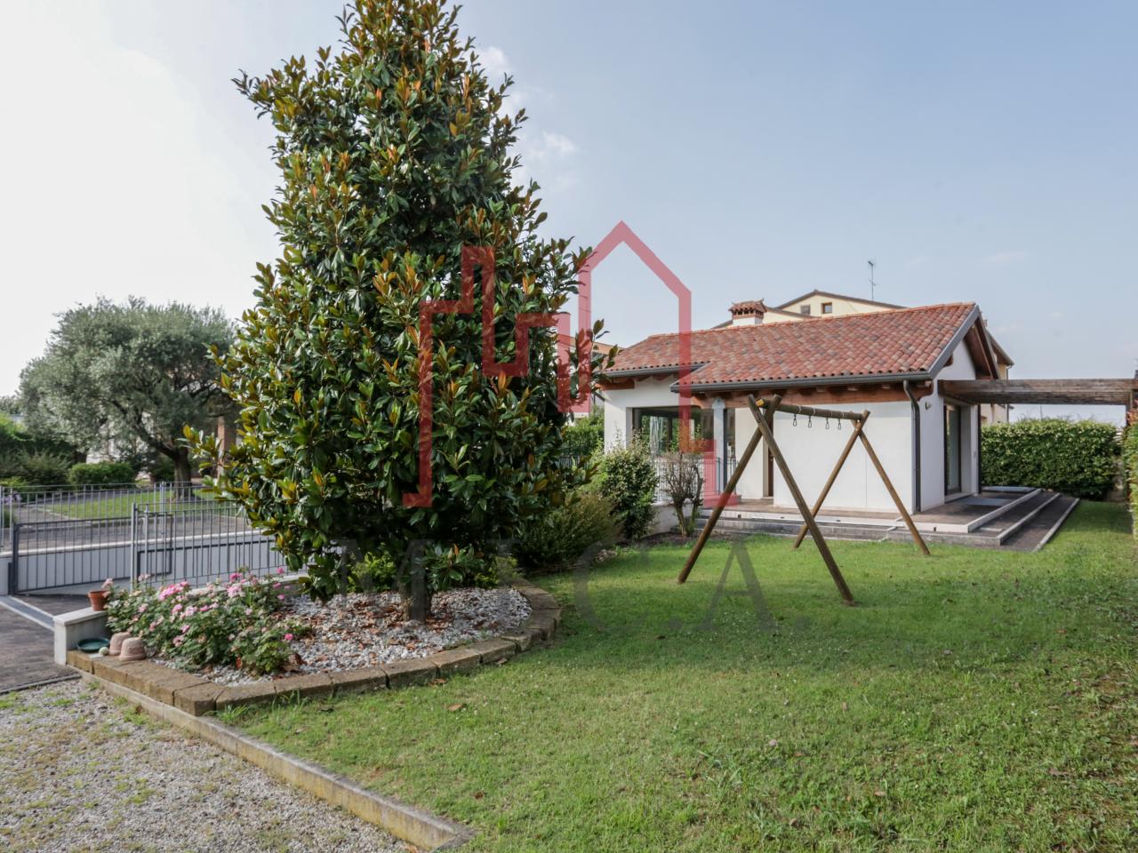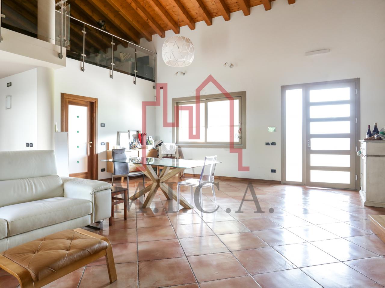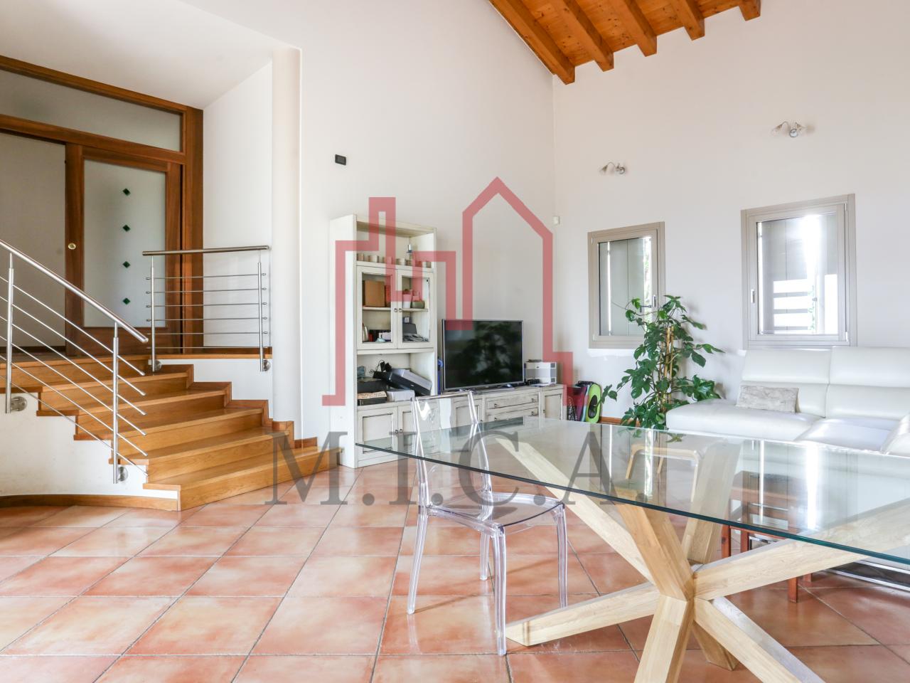 Vendesi elegante villa singola con ampio giardino e dependance. In zona residenziale tranquilla, la villa con rifiniture signorili è così composta: - zona giorno: bellissimo openspace con scala a chiocciola per l'accesso al sottotetto travato a vista, ampia cucina abitabile, lavanderia e comodo portico; - zona notte: tre camere da letto e due bagni; - zona interrata: taverna, studio, cantina e bagno; - dependance con camino e portico; - garage con 6 posti auto. Cappotto esterno e impianto fotovoltaico con ricarica veicoli elettrici. Riferimento: 01MT