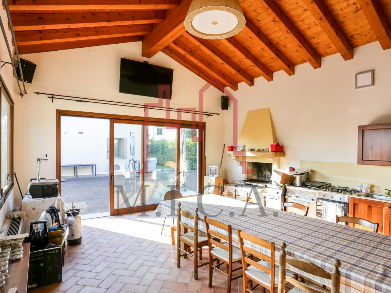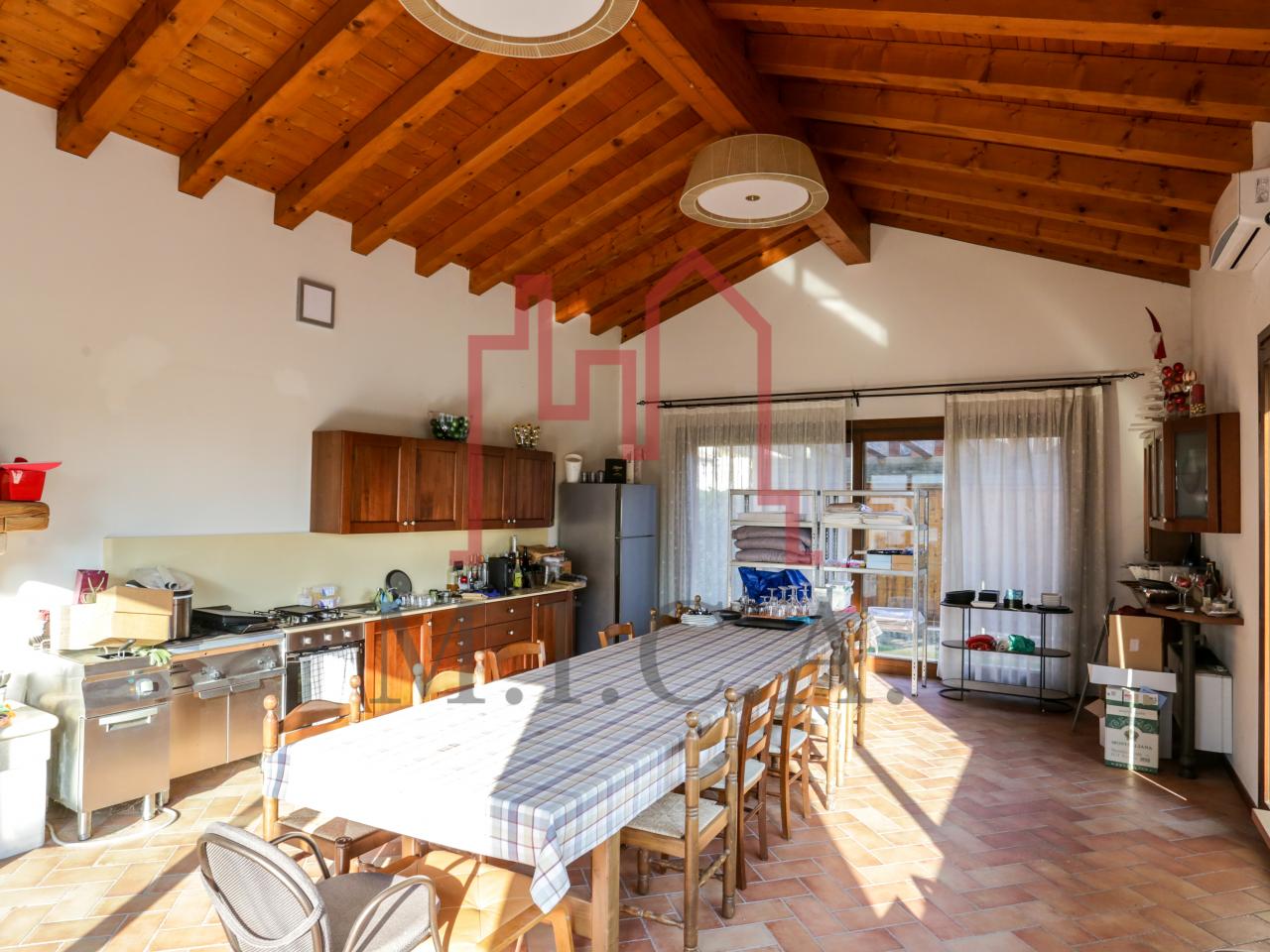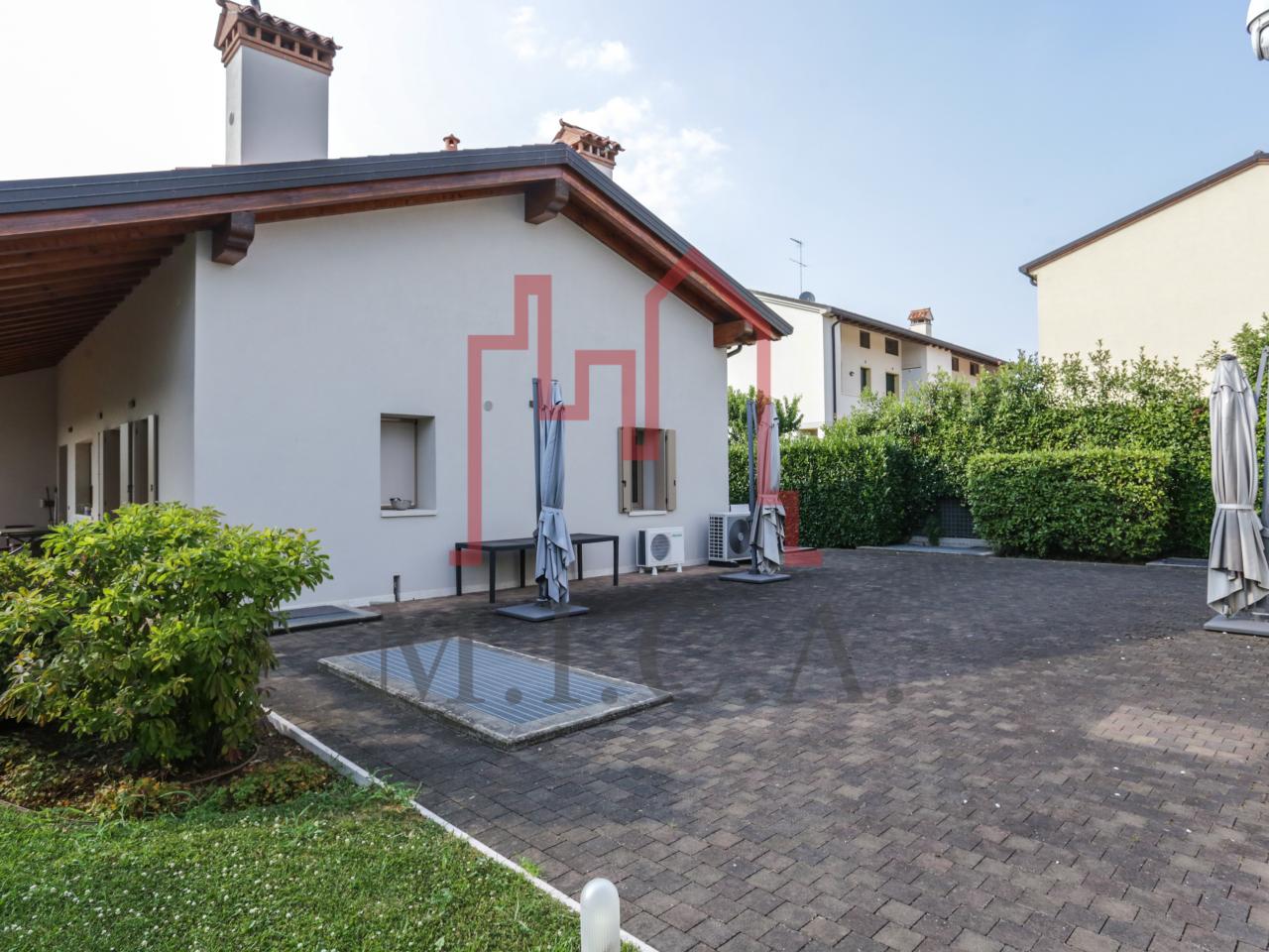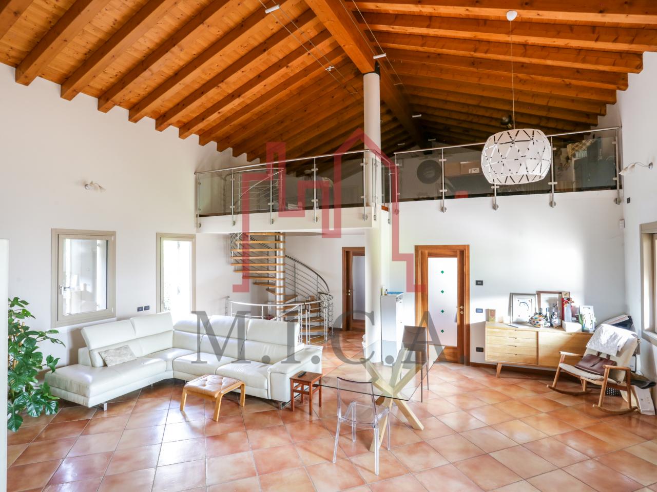 Vendesi elegante villa singola con ampio giardino e dependance. In zona residenziale tranquilla, la villa con rifiniture signorili è così composta: - zona giorno: bellissimo openspace con scala a chiocciola per l'accesso al sottotetto travato a vista, ampia cucina abitabile, lavanderia e comodo portico; - zona notte: tre camere da letto e due bagni; - zona interrata: taverna, studio, cantina e bagno; - dependance con camino e portico; - garage con 6 posti auto. Cappotto esterno e impianto fotovoltaico con ricarica veicoli elettrici. Riferimento: 01MT