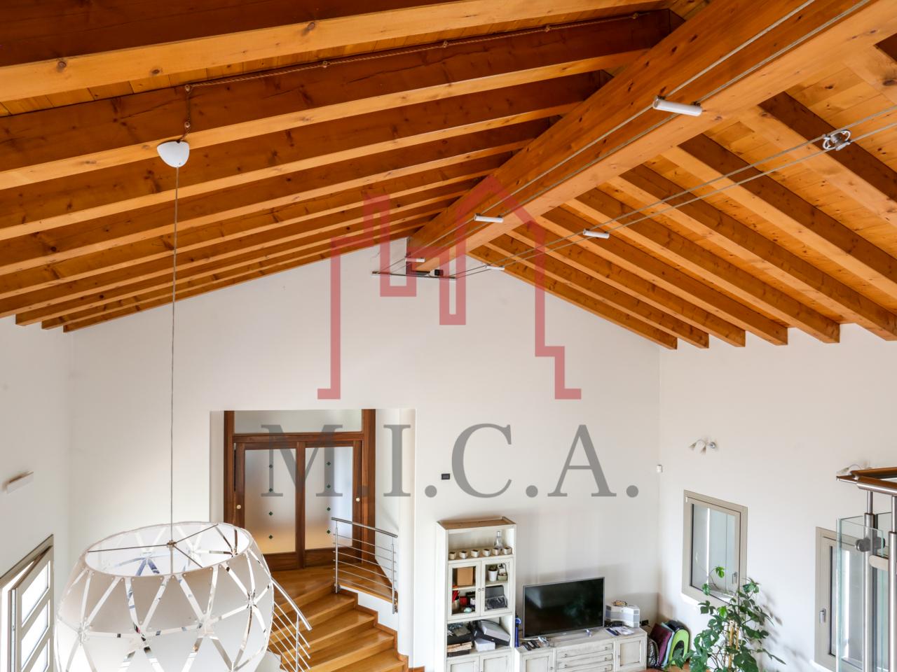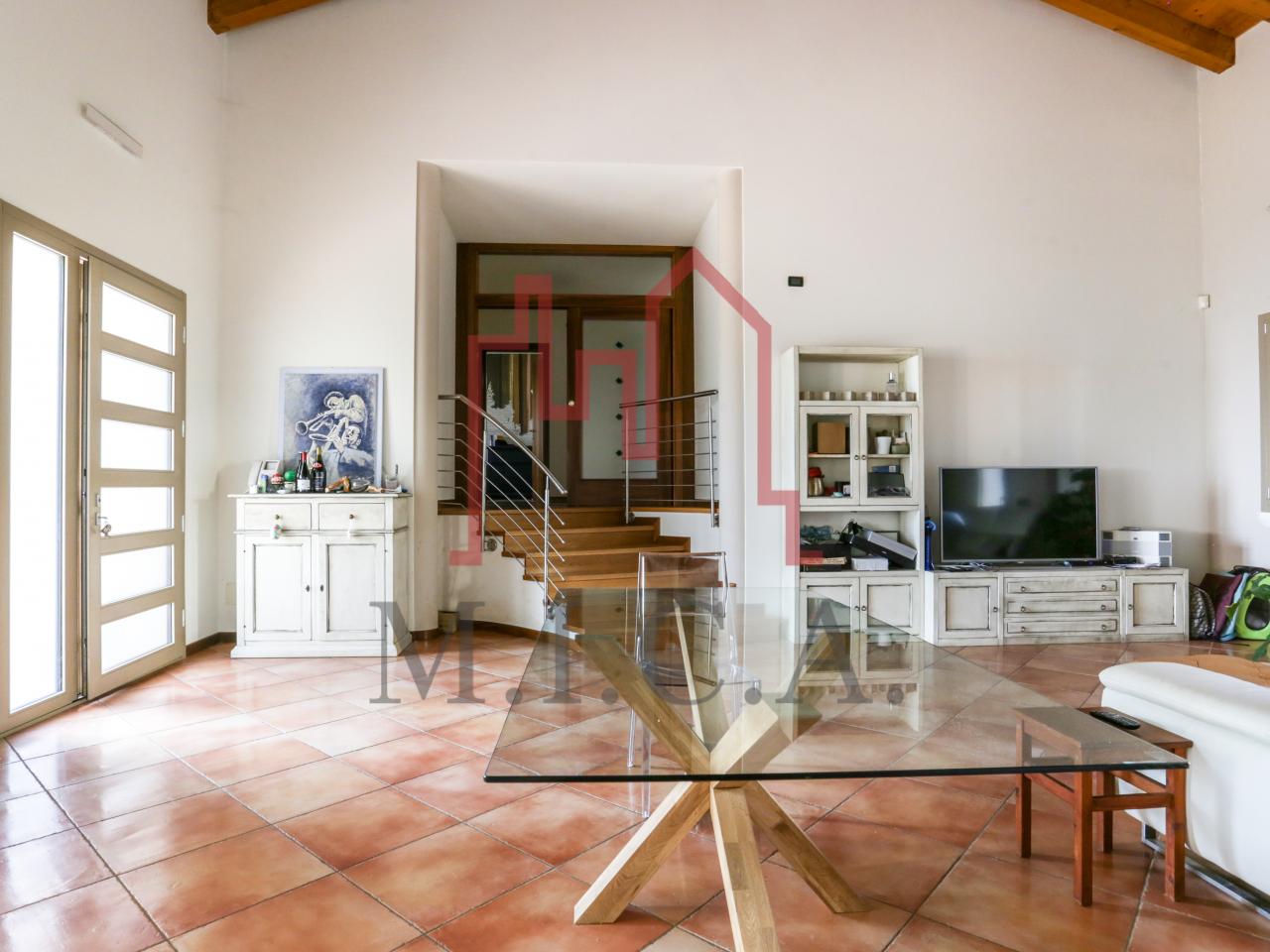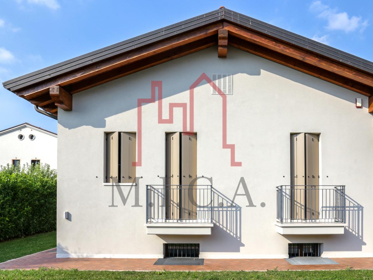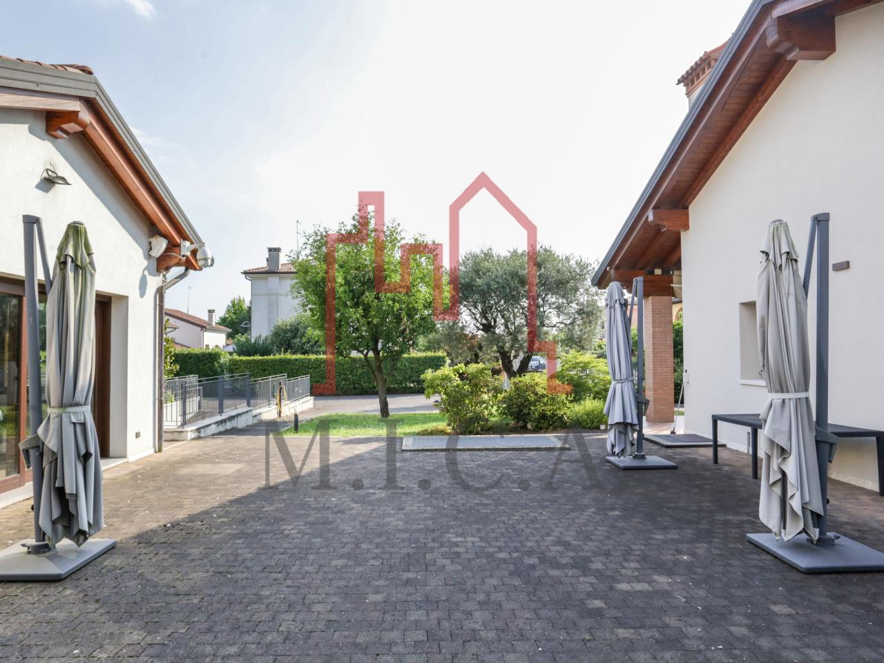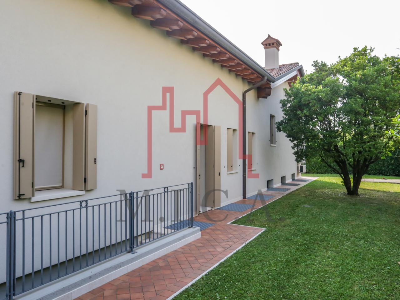 Vendesi elegante villa singola con ampio giardino e dependance. In zona residenziale tranquilla, la villa con rifiniture signorili è così composta: - zona giorno: bellissimo openspace con scala a chiocciola per l'accesso al sottotetto travato a vista, ampia cucina abitabile, lavanderia e comodo portico; - zona notte: tre camere da letto e due bagni; - zona interrata: taverna, studio, cantina e bagno; - dependance con camino e portico; - garage con 6 posti auto. Cappotto esterno e impianto fotovoltaico con ricarica veicoli elettrici. Riferimento: 01MT