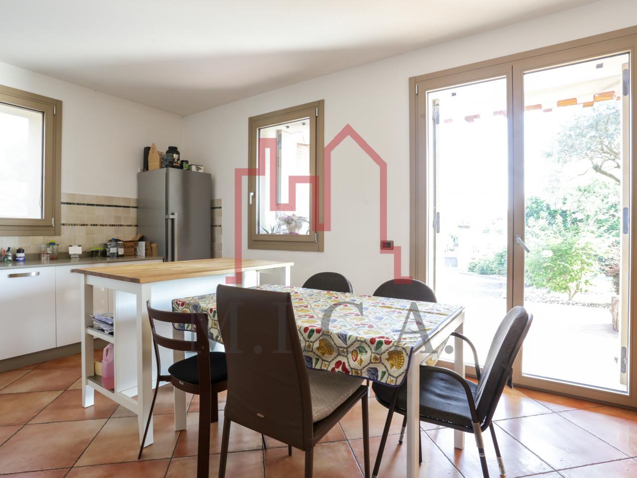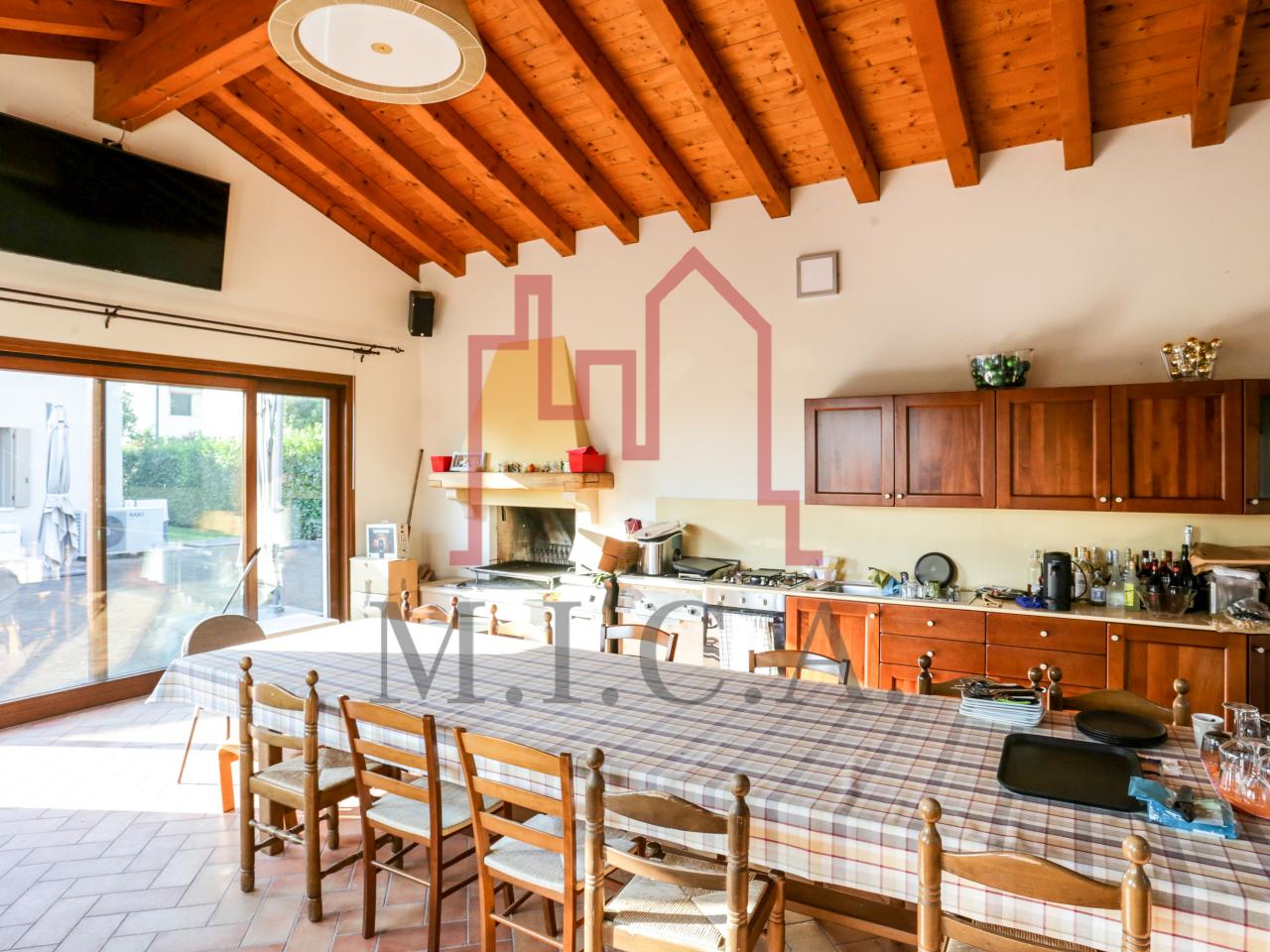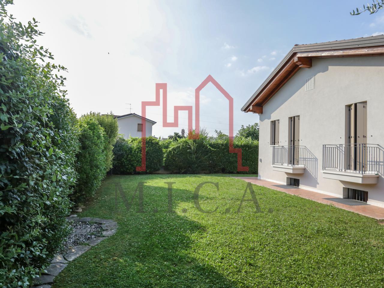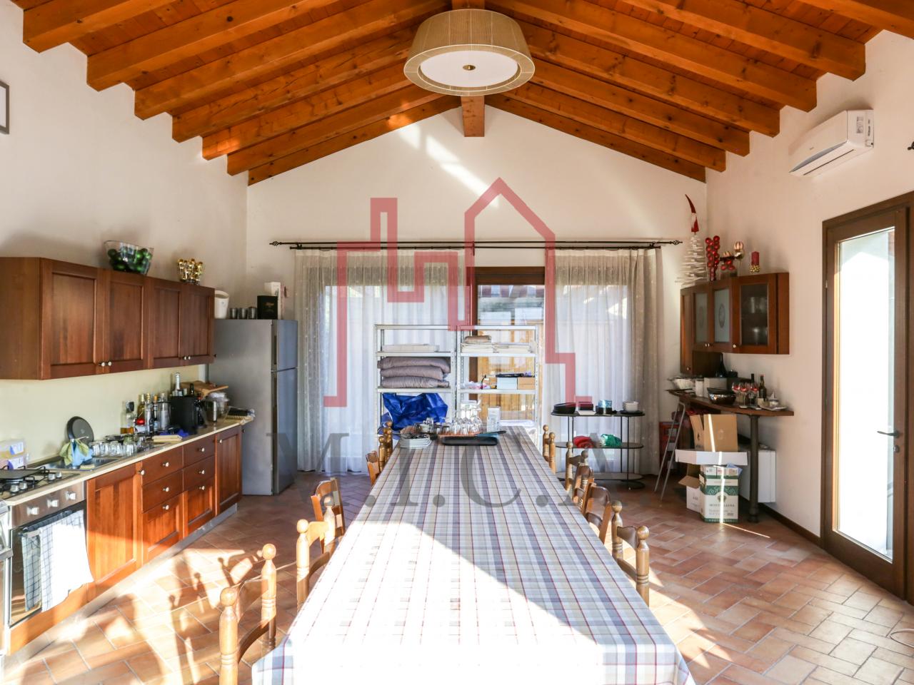 Vendesi elegante villa singola con ampio giardino e dependance. In zona residenziale tranquilla, la villa con rifiniture signorili è così composta: - zona giorno: bellissimo openspace con scala a chiocciola per l'accesso al sottotetto travato a vista, ampia cucina abitabile, lavanderia e comodo portico; - zona notte: tre camere da letto e due bagni; - zona interrata: taverna, studio, cantina e bagno; - dependance con camino e portico; - garage con 6 posti auto. Cappotto esterno e impianto fotovoltaico con ricarica veicoli elettrici. Riferimento: 01MT