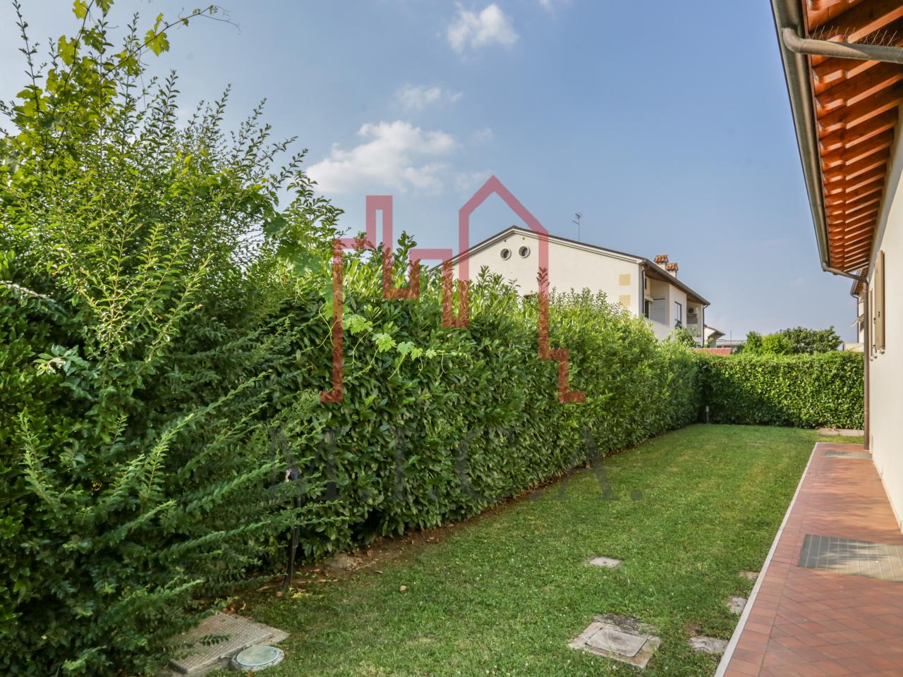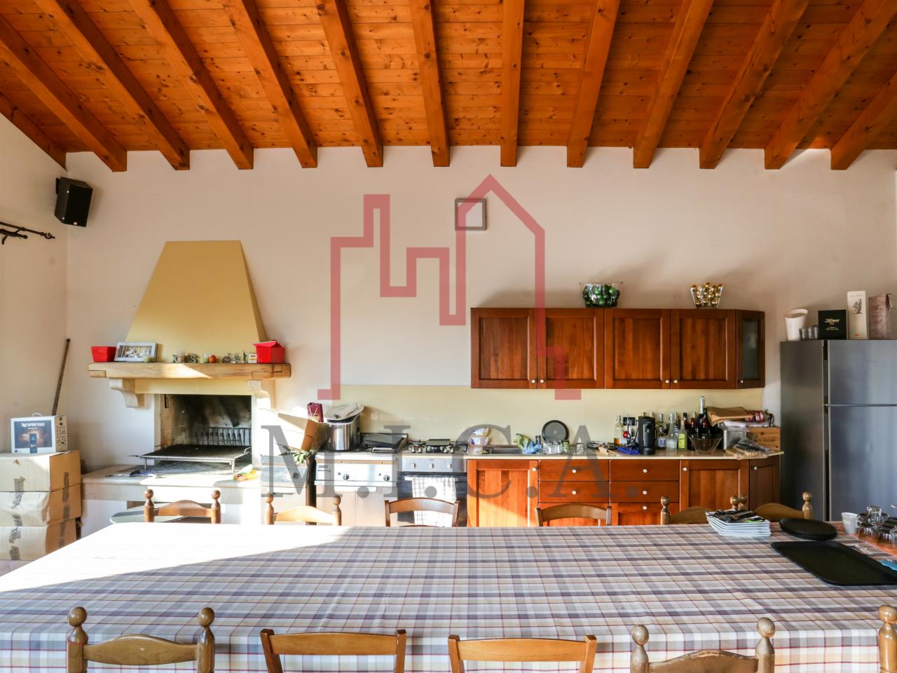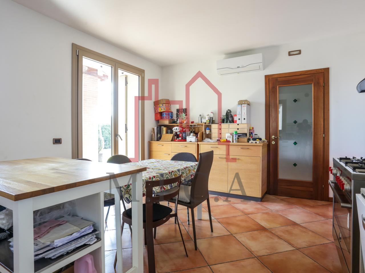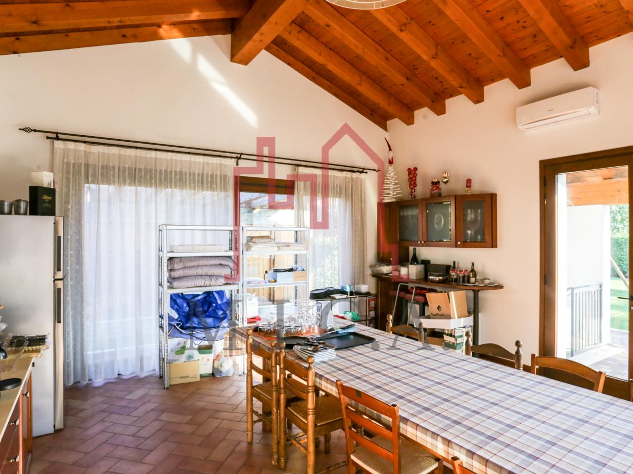 Vendesi elegante villa singola con ampio giardino e dependance. In zona residenziale tranquilla, la villa con rifiniture signorili è così composta: - zona giorno: bellissimo openspace con scala a chiocciola per l'accesso al sottotetto travato a vista, ampia cucina abitabile, lavanderia e comodo portico; - zona notte: tre camere da letto e due bagni; - zona interrata: taverna, studio, cantina e bagno; - dependance con camino e portico; - garage con 6 posti auto. Cappotto esterno e impianto fotovoltaico con ricarica veicoli elettrici. Riferimento: 01MT
