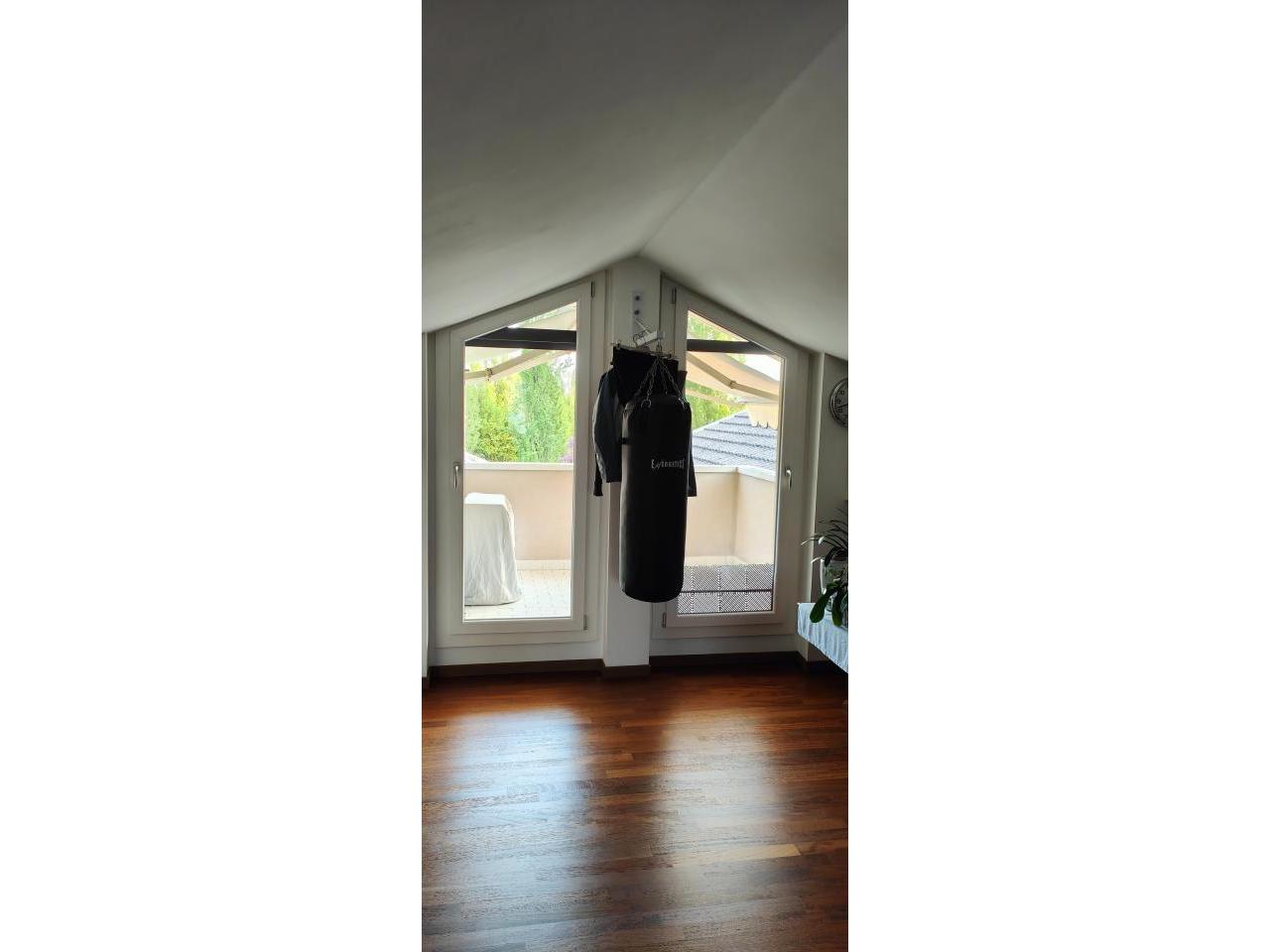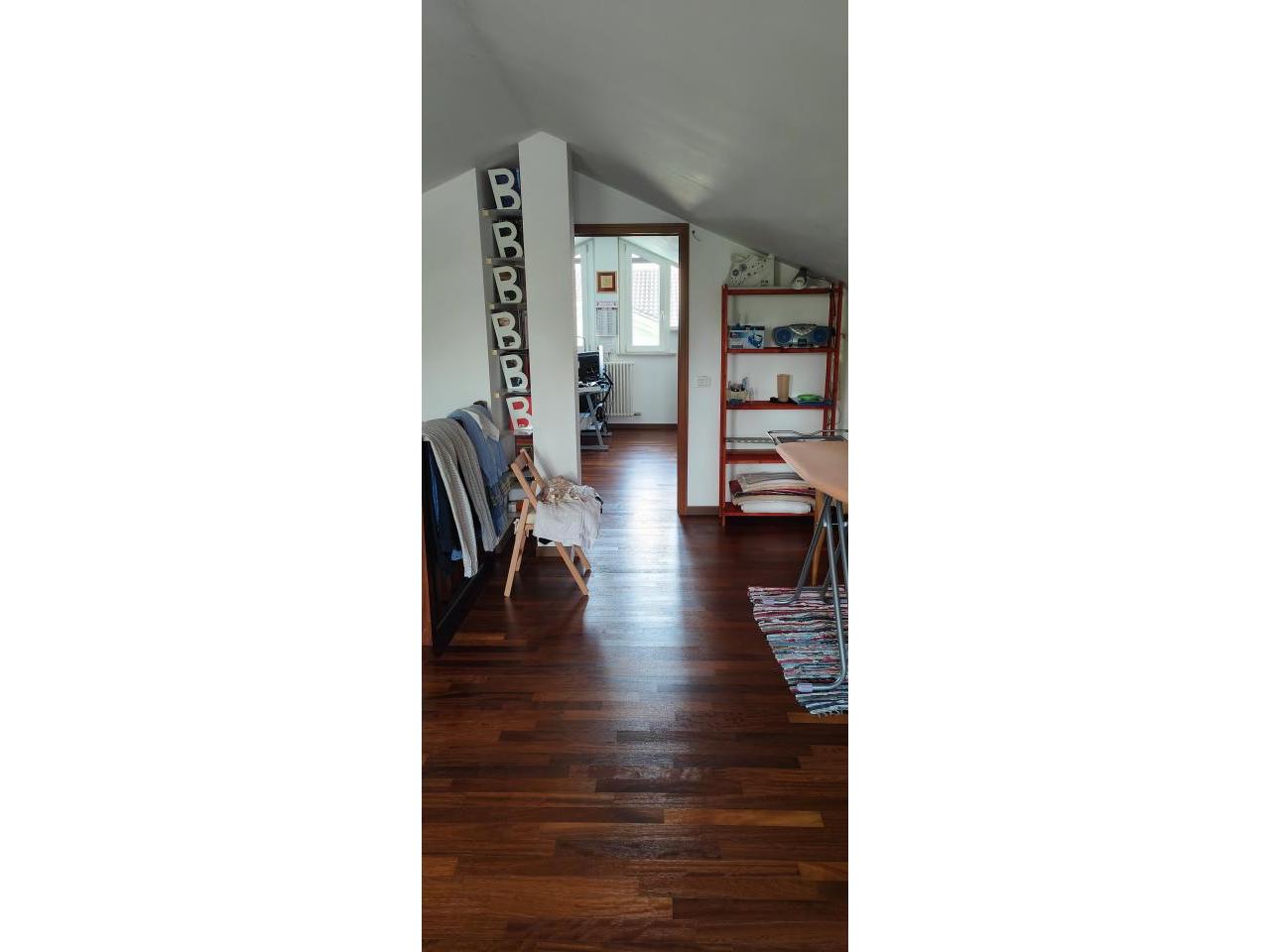 In pieno centro a Trebaseleghe, comodo a tutti i servizi, proponiamo un luminoso appartamento duplex situato al primo piano di una palazzina di sole 4 unità senza amministratore. Una soluzione ideale per chi cerca tranquillità, spazi ben distribuiti e un contesto curato. L’immobile, ristrutturato nel 2005, si sviluppa su due livelli. Al primo piano troviamo un’accogliente zona giorno con soggiorno e terrazzo esposto a ovest, cucina separata arredata su misura, camera matrimoniale con terrazzo privato, camera singola, bagno finestrato con vasca e secondo bagno/lavanderia con doccia. Al livello superiore, una mansarda abitabile di circa 25 mq offre due stanze molto versatili (studio, terza camera, area relax) e un terrazzo esposto a sud. Dotazioni: infissi in PVC antisfondamento, zanzariere, tende da sole, 3 split climatizzazione, caldaia a condensazione, pavimenti in legno Douglas nella zona notte e mansarda. Completano la proprietà garage, cantinetta, posto auto scoperto e piccolo giardino condominiale. Pronto da abitare, ideale per chi vuole vivere in centro senza rinunciare a spazio e comfort. RIF. 31SC
