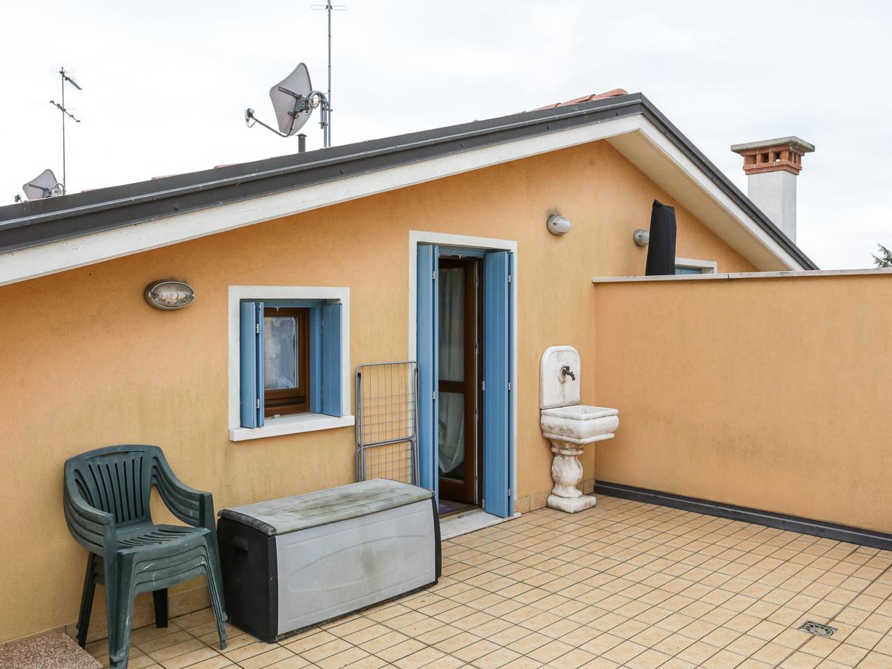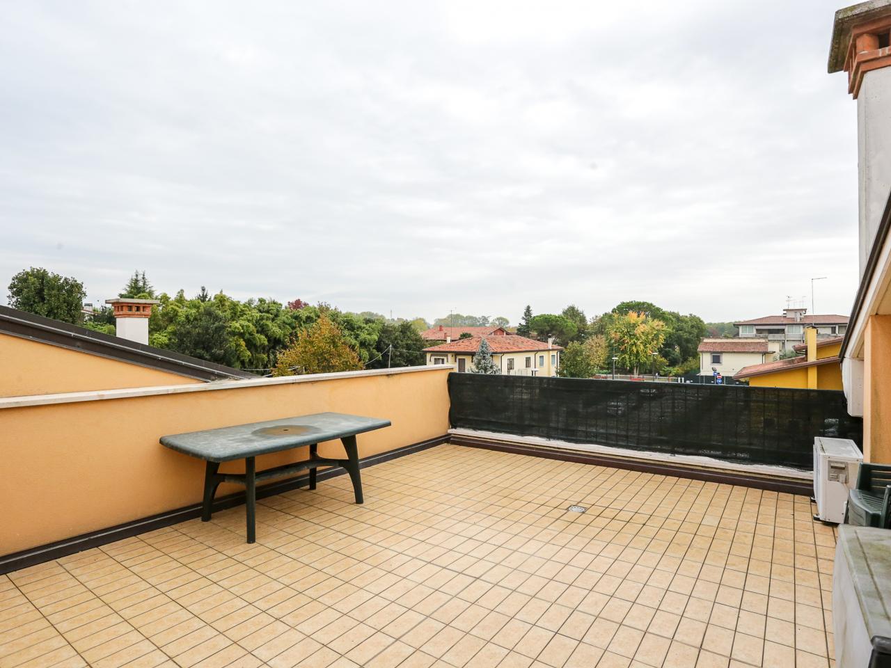 Vendesi attico in centro a Fossalta di Piave. L'immobile, abitabile da subito, si sviluppa su due livelli: - al piano primo entriamo nell'ampio soggiorno con porta finestra sul balcone più grande abitabile, seguendo il corridoio troviamo la cucina, il bagno principale e infine la prima camera da letto matrimoniale con porta finestra sul secondo balcone, comoda zona ripostiglio sotto le scale; - salendo le scale interne private al secondo ed ultimo piano travato a vista troviamo la seconda camera matrimoniale con cabina armadio e abbaino, il secondo bagno e l'ultima stanza dell'immobile, dalla porta finestra si accede alla grande terrazza privata con vista sul campanile; - completa la proprietà garage al piano interrato e posto auto interno. Bassi consumi energetici grazie al riscaldamento a pavimento e il cappotto esterno. A piedi si raggiungono le scuole primarie, la chiesa, il supermercato e le attività del centro. Dall'immobile è facilmente raggiungibile l'argine del Piave dove troviamo la ciclovia Cortellazzo - Belluno e altre attività. Riferimento: 04MT