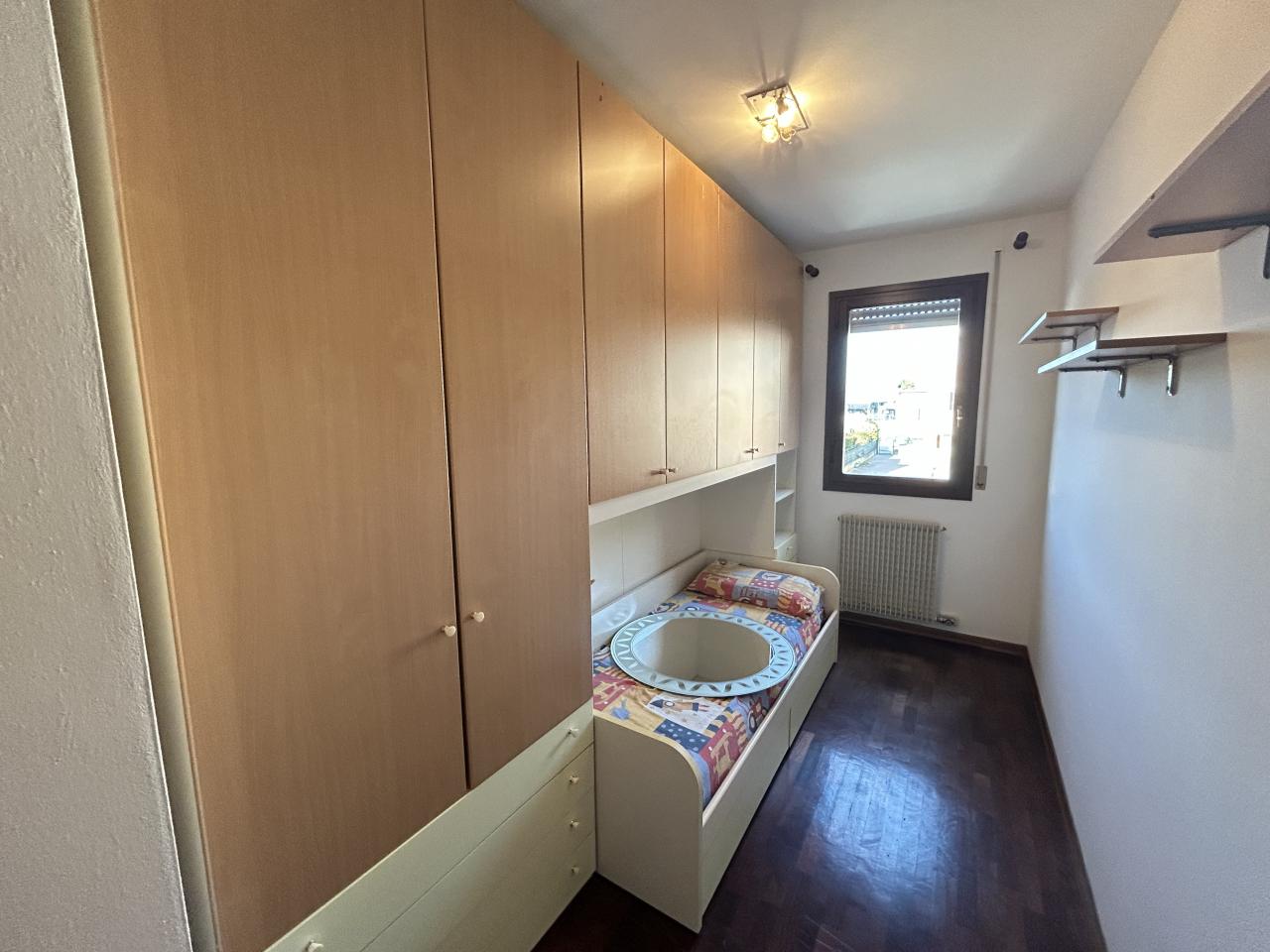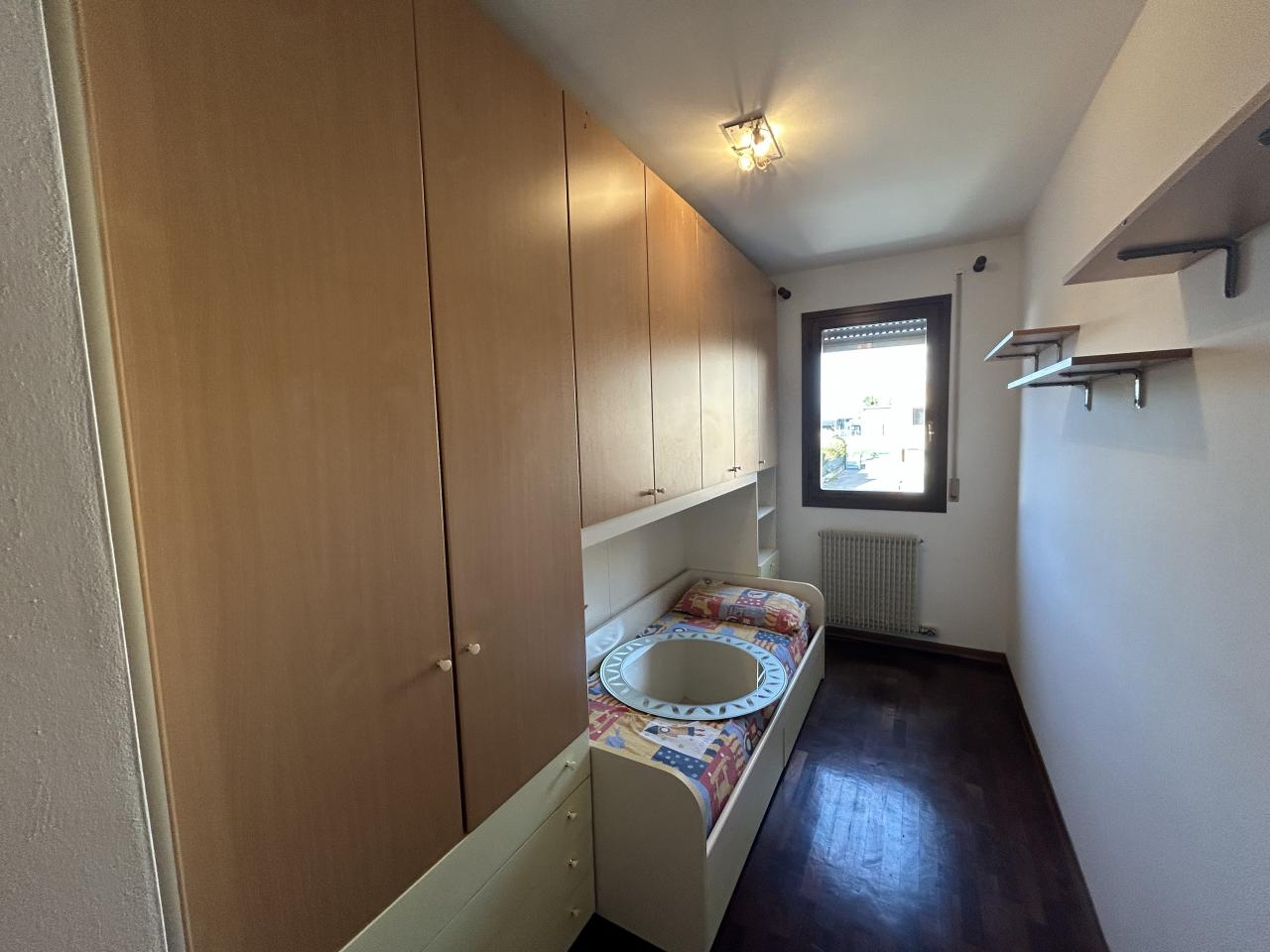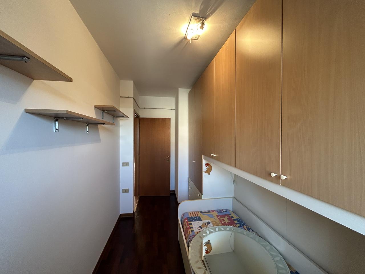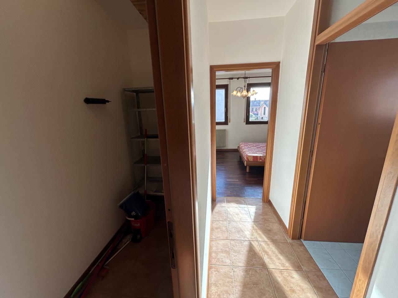 Se sogni una casa che combini comodità e stile di vita moderno in una posizione strategica, questo appartamento a Borgoricco (PD) è l'ideale. Ci troviamo in zona centrale, a due passi dal Parco dei Pensieri e dal Comune, garantendo accesso immediato a tutti i servizi e ai luoghi di svago. L'immobile è situato al primo piano di un curato contesto residenziale di sole 12 unità ed è comodamente servito da ascensore. Spazio, Luce e Flessibilità (95 mq) Con una superficie di 95 metri quadrati, l'appartamento offre spazi generosi e una luminosità ineguagliabile. L'ingresso si apre su un'ampia e accogliente zona giorno open space. Qui, la cucina con isola centrale, la zona pranzo e il soggiorno si integrano perfettamente in un ambiente conviviale, inondato di luce naturale grazie alle tre porte finestre. Queste aperture conducono direttamente alla terrazza esterna, il luogo perfetto per momenti di relax e pasti all'aperto. Un valore aggiunto di questo immobile è la sua flessibilità: l'ingresso è stato pensato in modo da poter essere diviso facilmente, creando un disimpegno separato e più riservato rispetto alla zona giorno. Comfort e Materiali Un disimpegno conduce alla zona notte, dove il comfort è assicurato. Troviamo una camera matrimoniale eccezionalmente luminosa, caratterizzata da una doppia parete finestrata esposta a Sud, e una camera singola. Pavimentazione: La zona notte vanta il calore del parquet in legno, mentre il resto della casa (zona giorno e servizi) è rivestito con pratiche piastrelle. Completano la proprietà due bagni finestrati, di cui uno sapientemente organizzato come lavanderia, e un utile ripostiglio. Accessori e Tranquillità Al piano interrato, l'appartamento dispone di accessori indispensabili: una cantina privata e un comodo garage doppio. La casa è pronta per essere abitata e garantisce massima efficienza grazie alla caldaia nuova installata nel 2025. Non perdere questa imperdibile opportunità di vivere nel cuore di Borgoricco in un appartamento moderno, efficiente e con garage doppio. Rif. 22SC